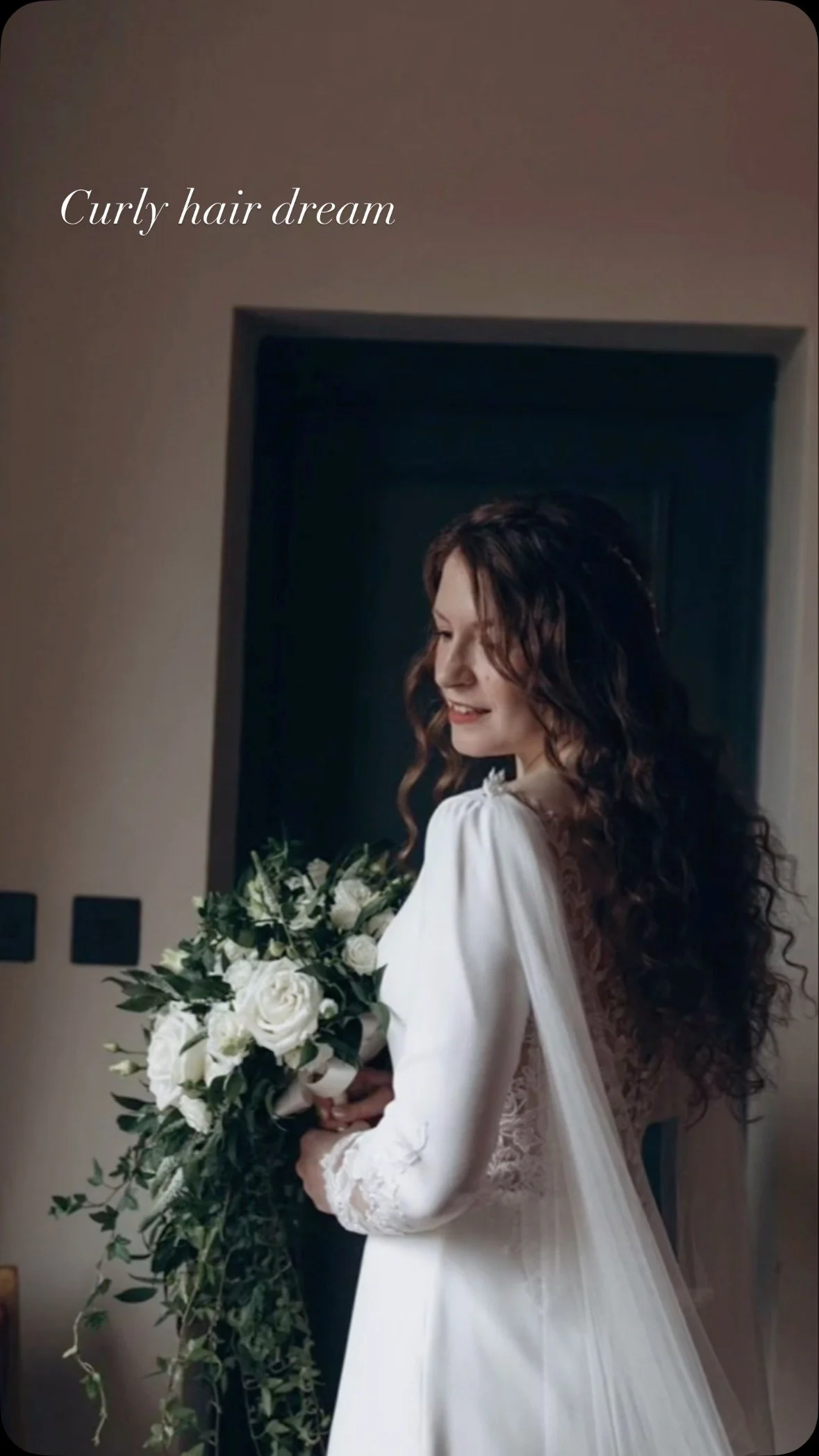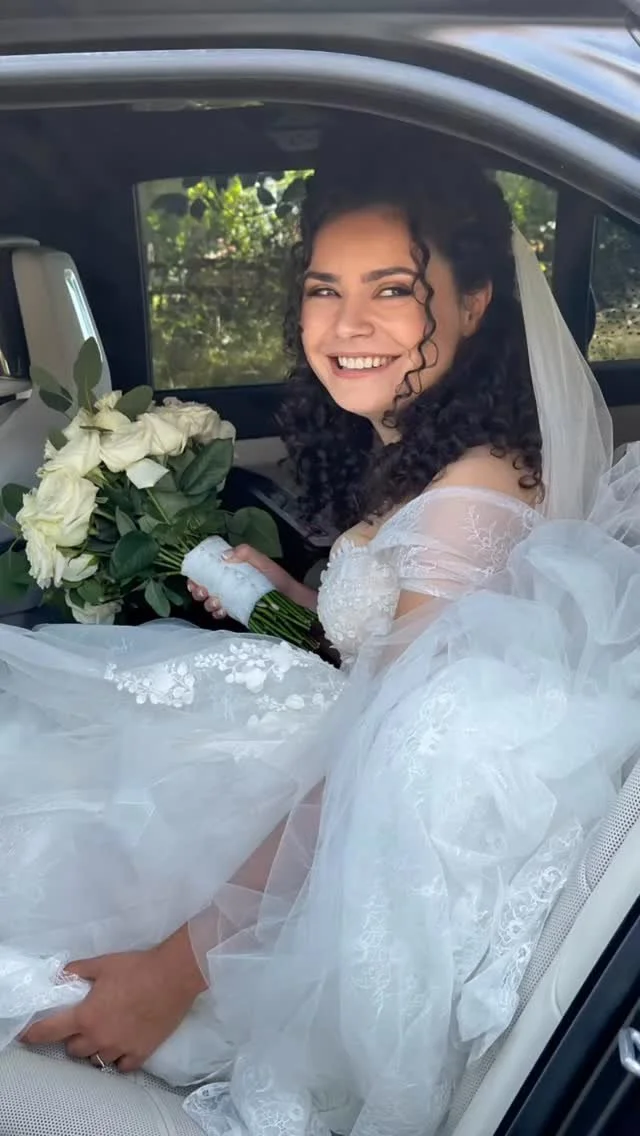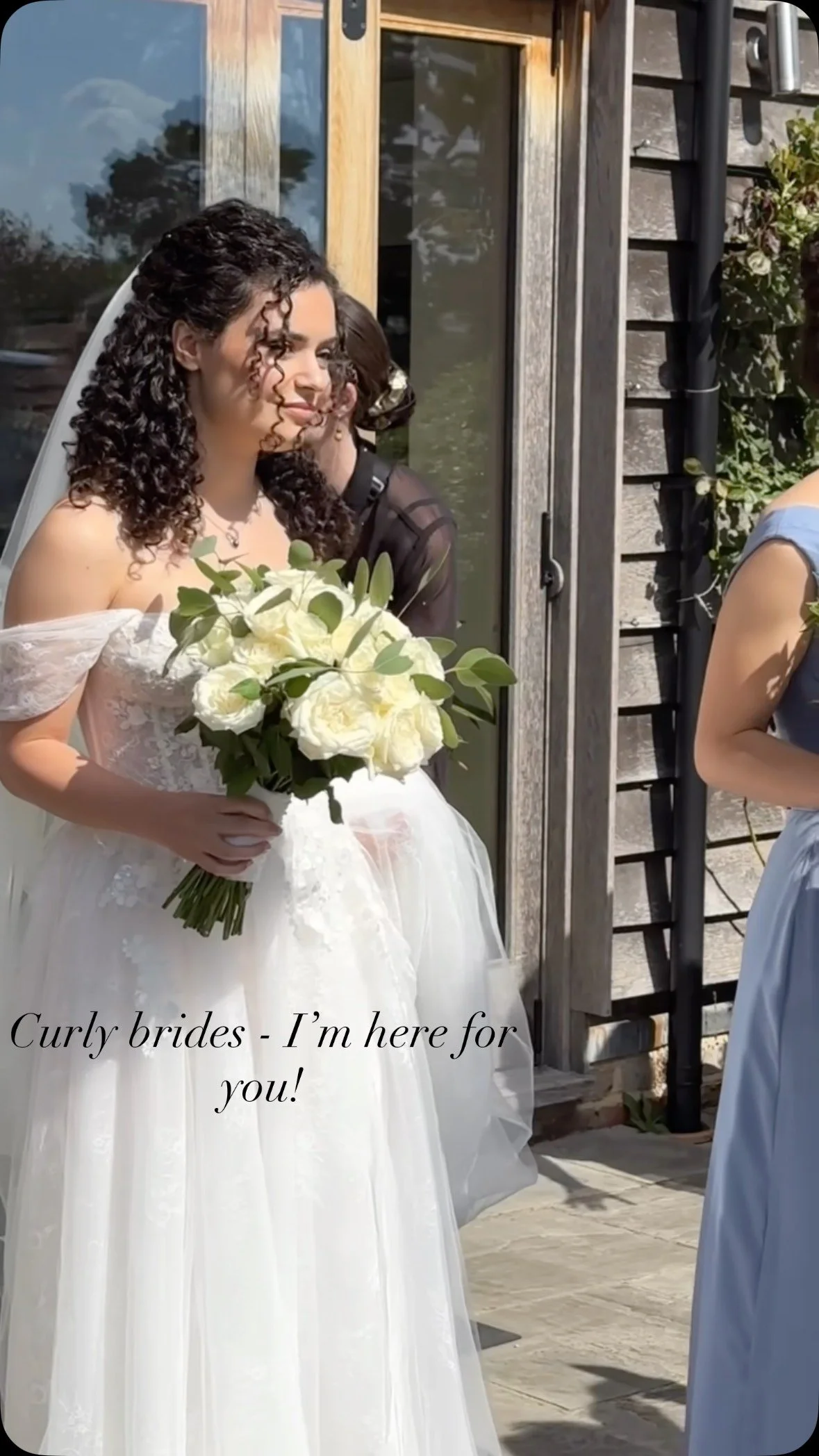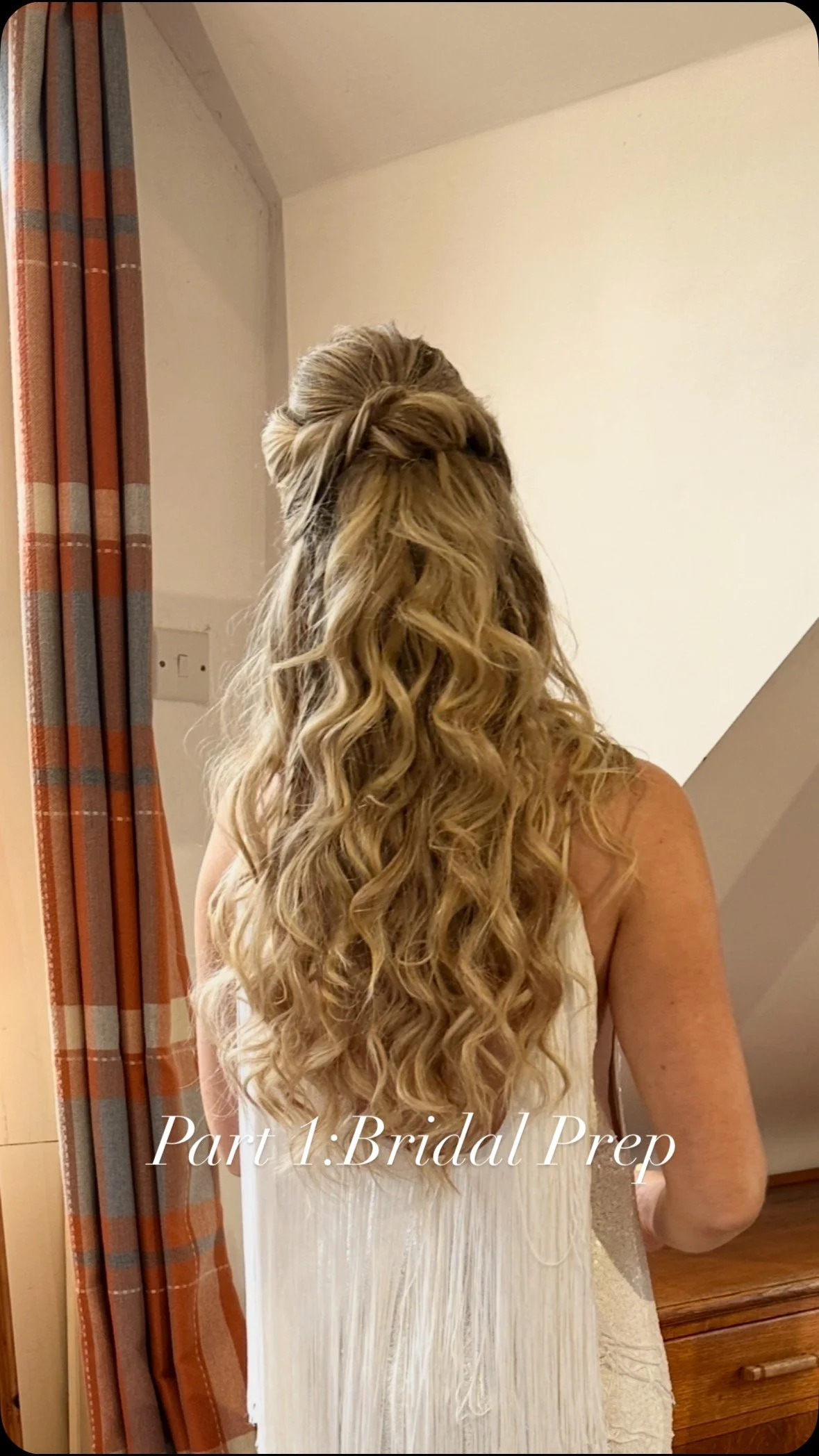 Rachel's hair was curled before braiding the two sides, keeping the style very soft and natural. The back was pinned into a loose curly 'boho' knot.
